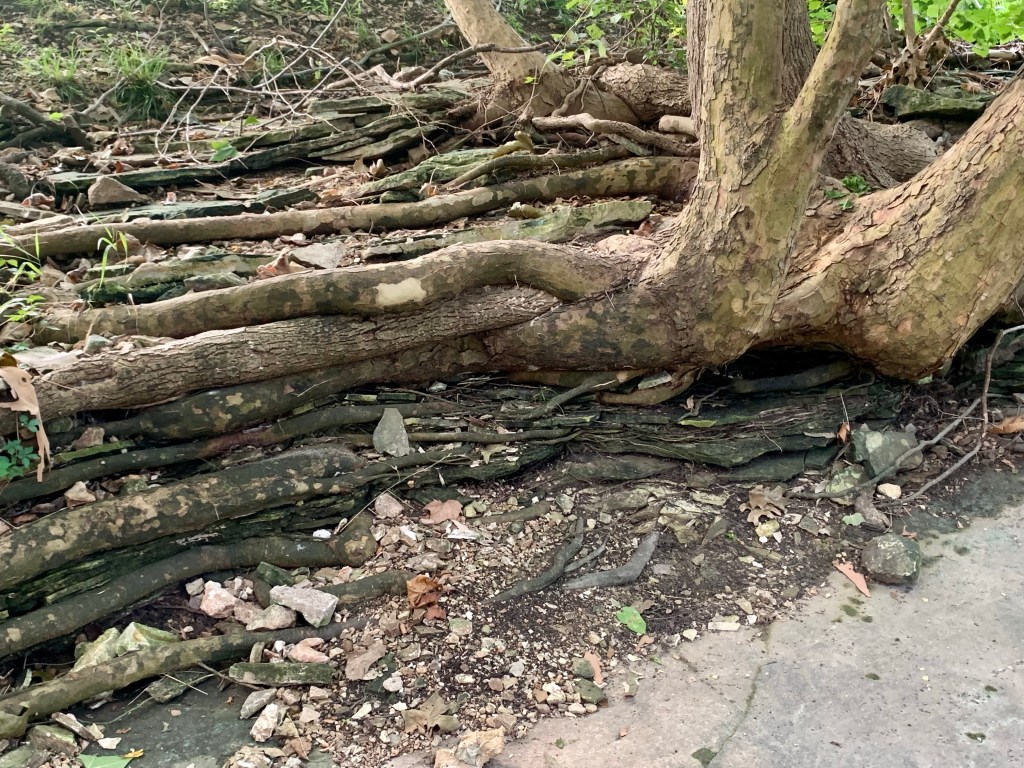 So yes…I sneered when people entered my haven, and was happy to see them pass me on the trail and out of my energy field. I hugged the trees I passed and told them how strong they were. I laughed at the ducks at the duck pond I passed, and wondered at roots winding their way through layers of limestone. It was if the roots and rocks were in the middle of a waltz. Time passes so slowly for us they appear still, but I could see them winding in a dance that would last centuries, if the parks are allowed to last that long. So much necessary frailty lying in the hands of developers and contractors, defining the sacred with money and profit.